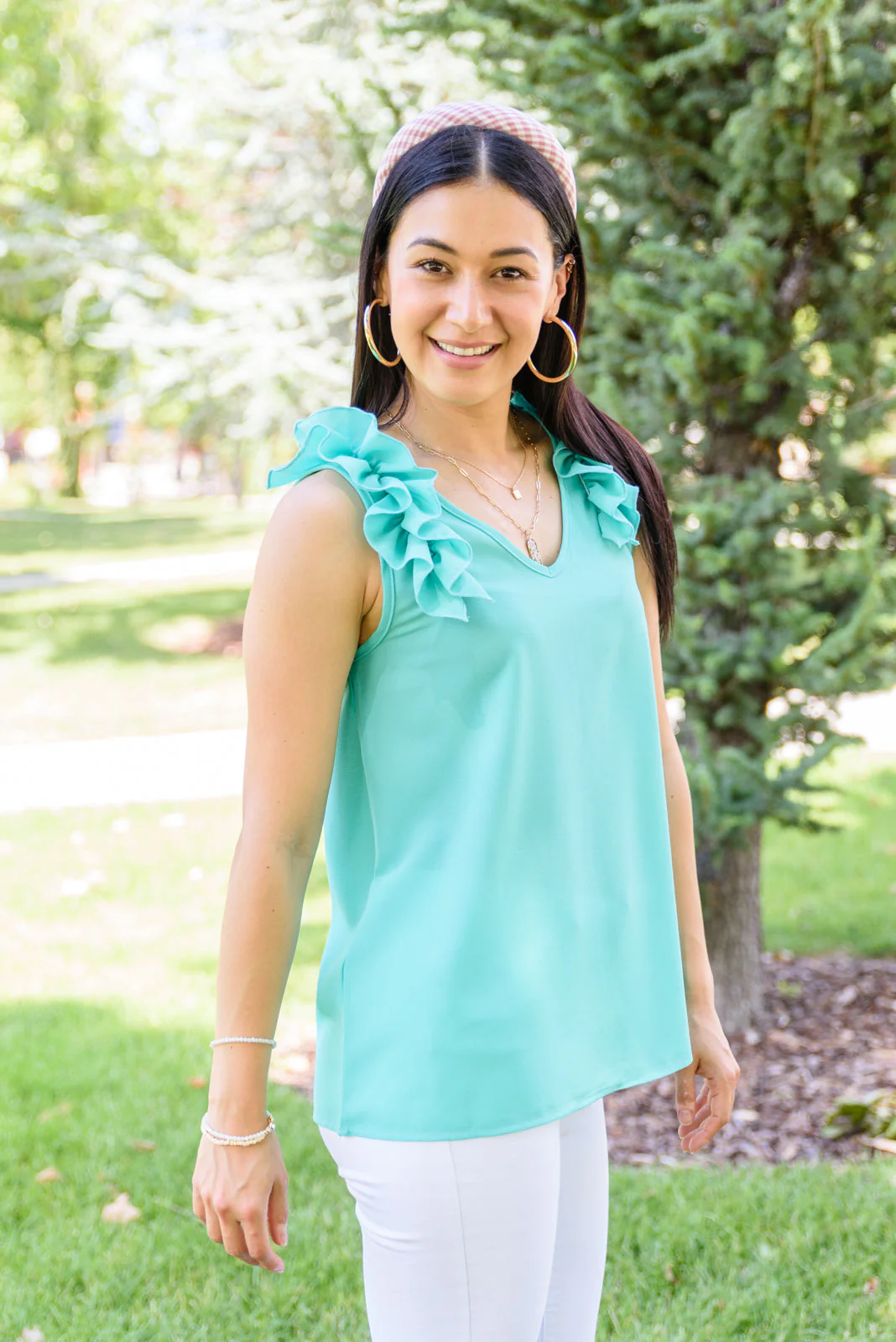 Basic Instinct Drop Shoulder V-Neck Tee in Mint