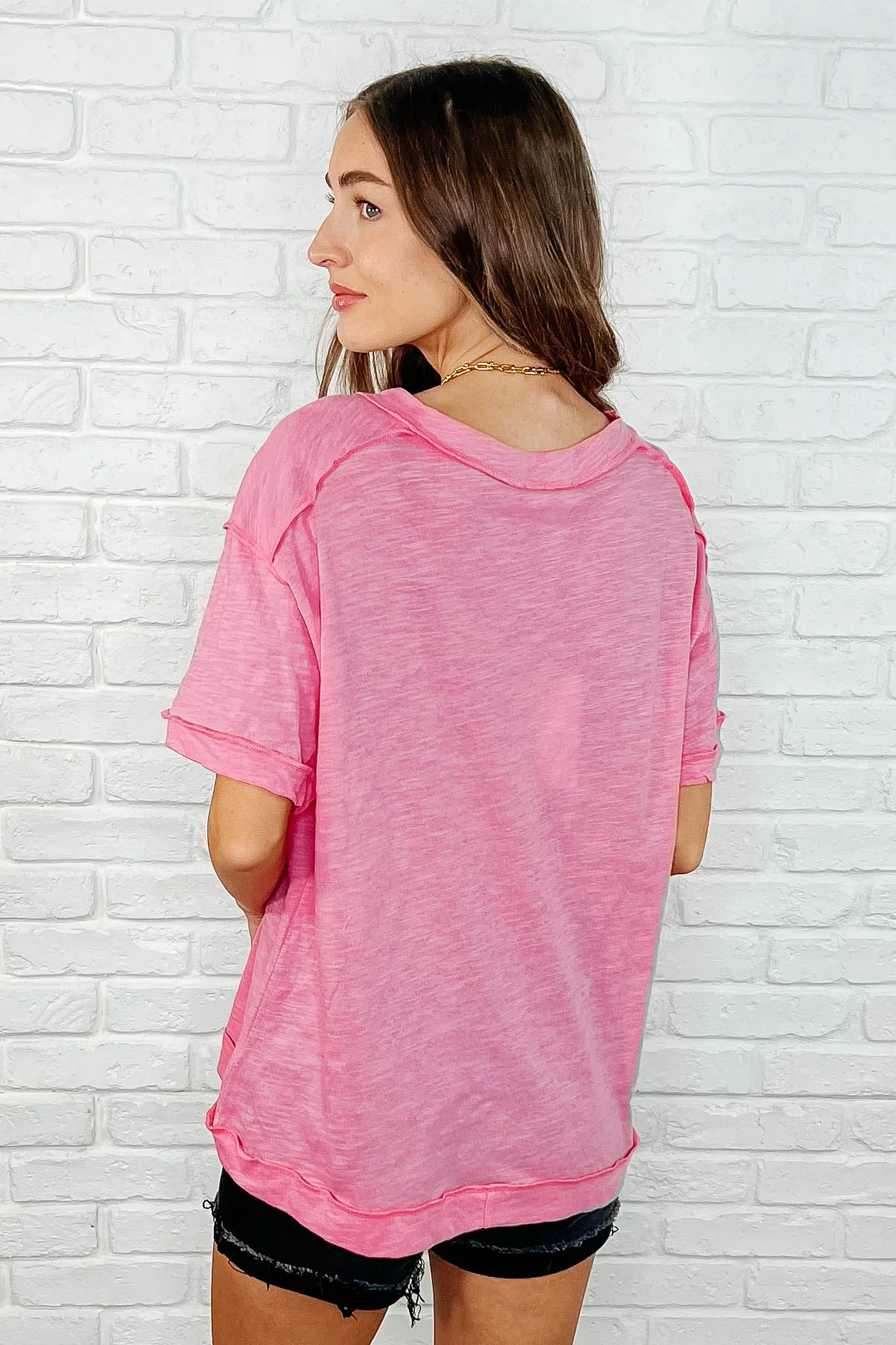 Basic Instinct Drop Shoulder V-Neck Tee in Pink