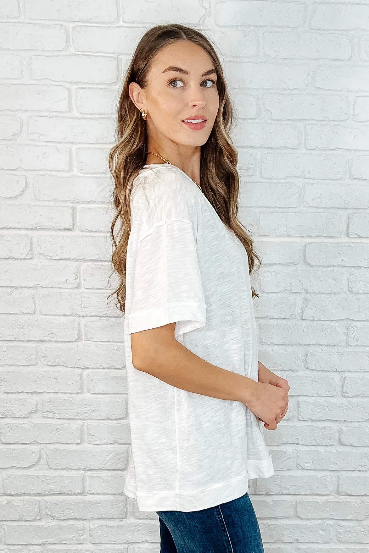 Basic Instinct Drop Shoulder V-Neck Tee in Ivory