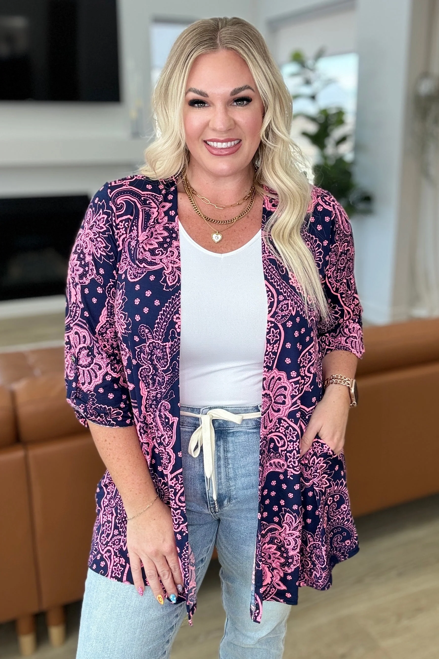 Lizzy Cardigan in Navy and Lavender Bouquet