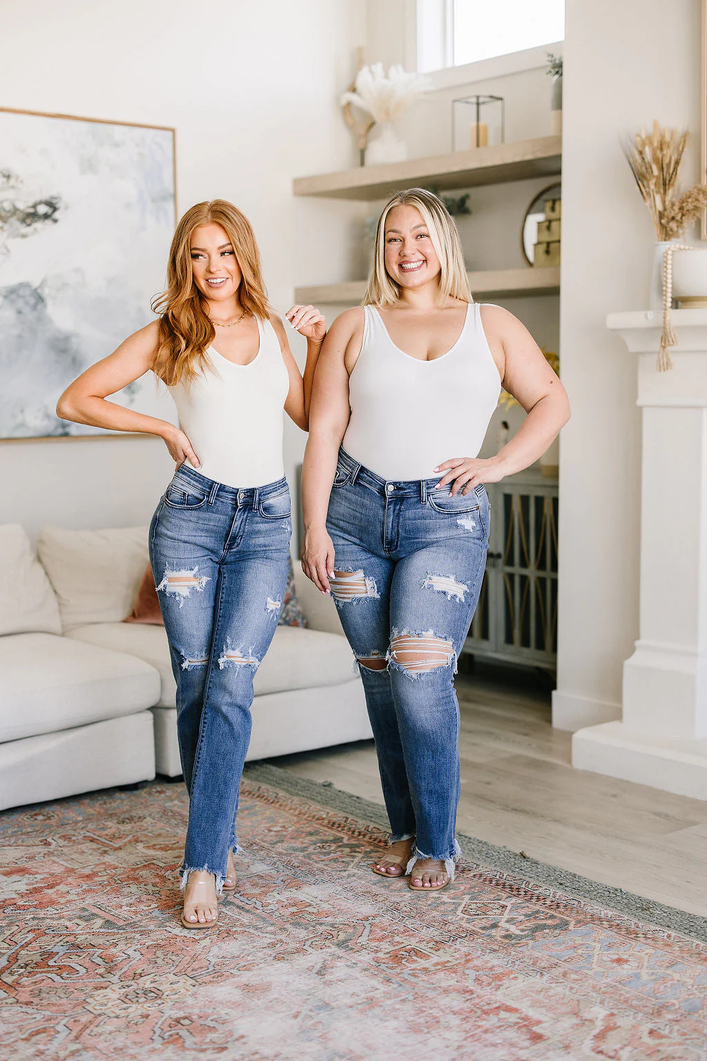 JUDY BLUE Bree High Rise Control Top Distressed Straight Jeans