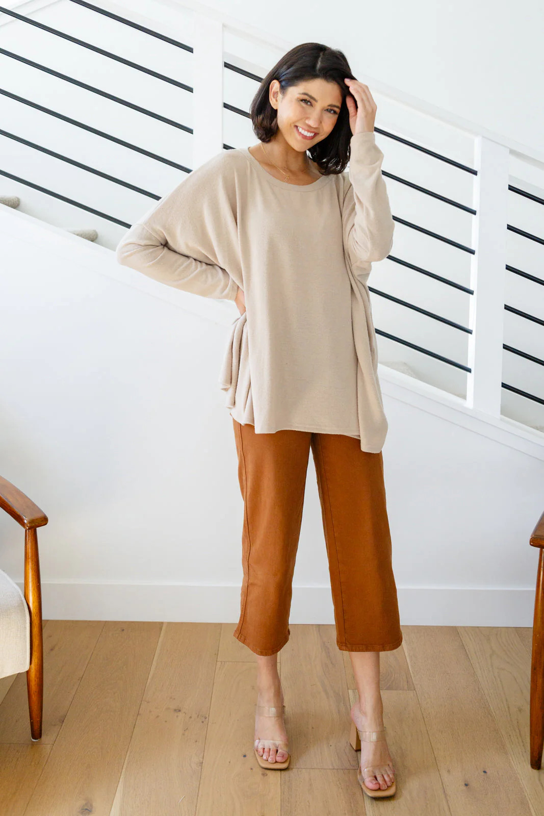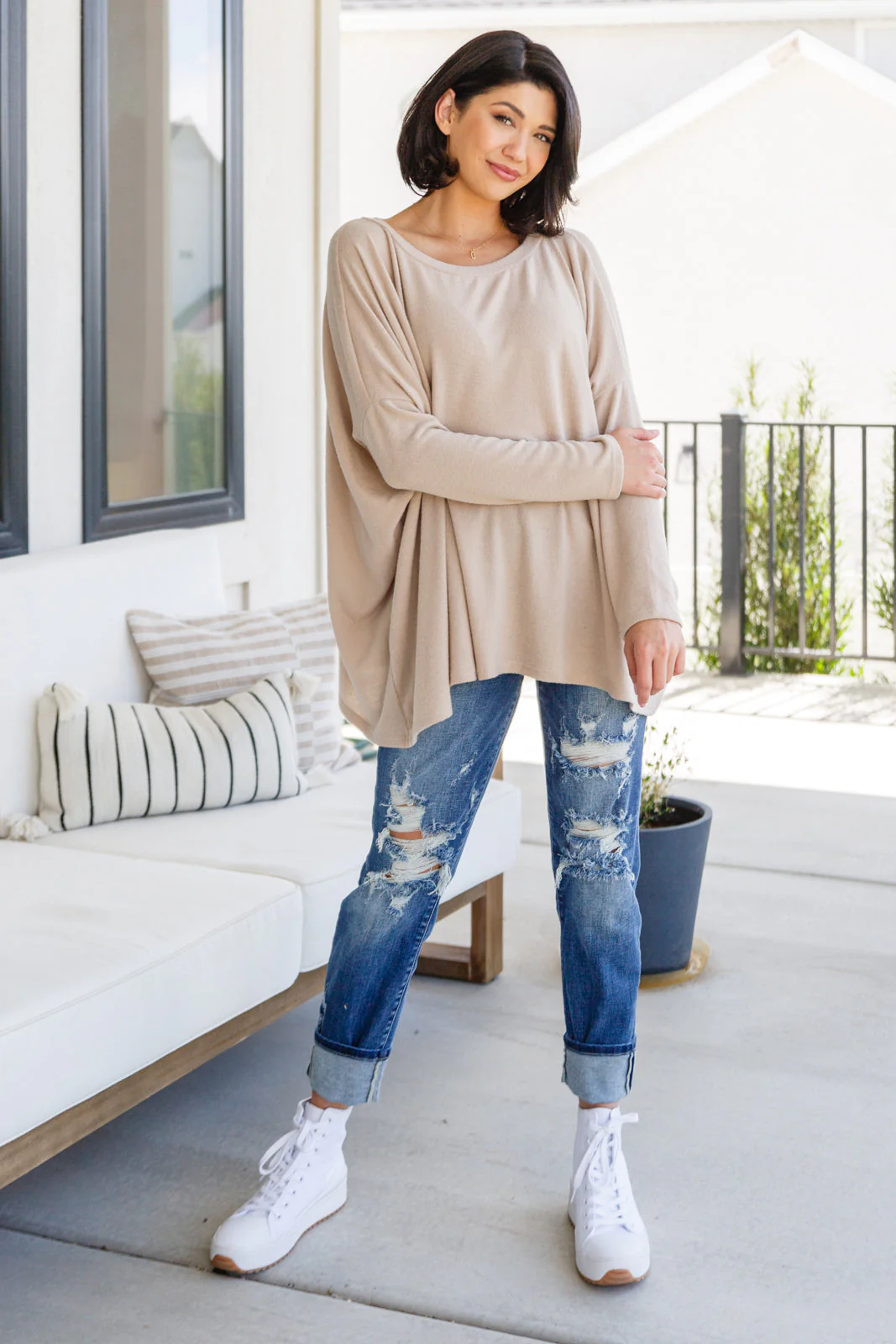 Textured Boxy Top in Taupe