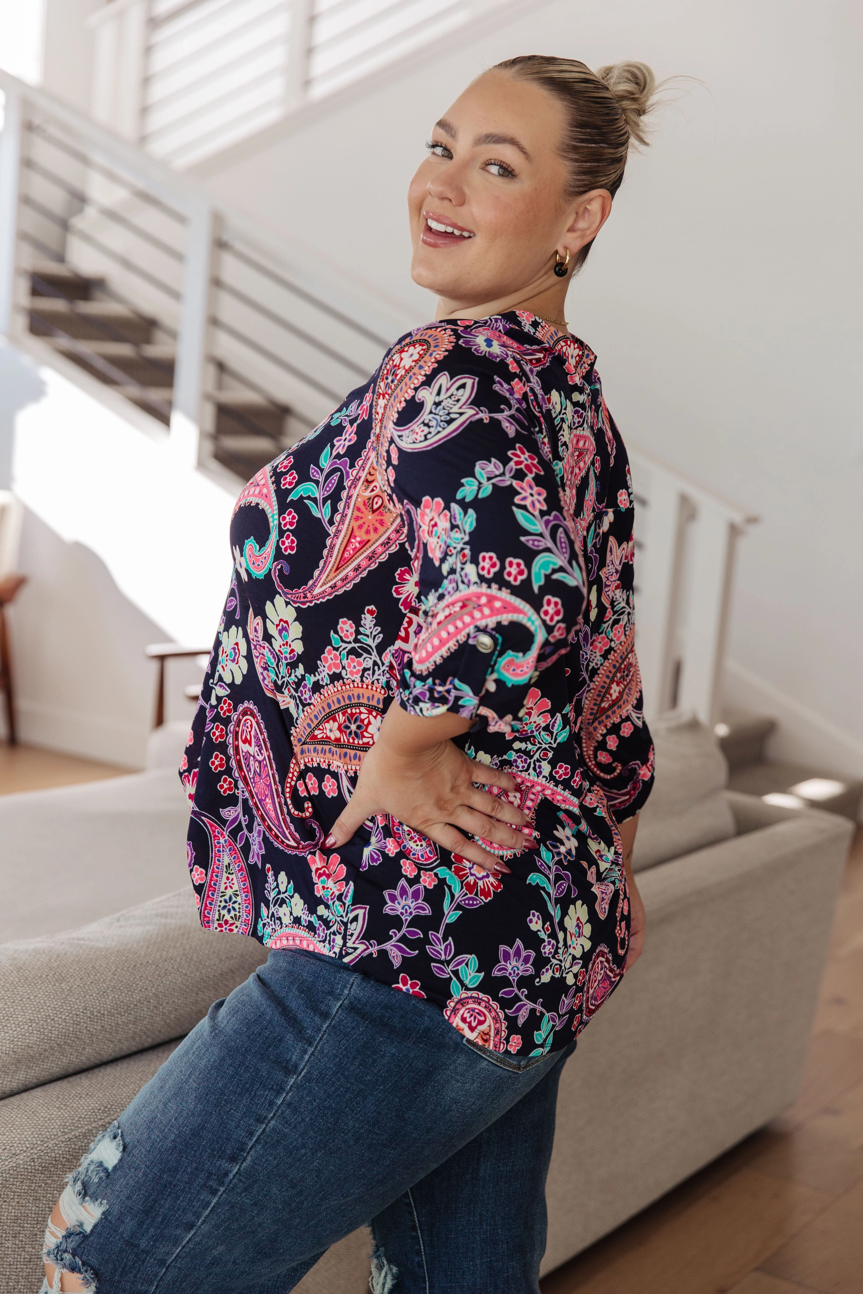 Little Lovely Blouse in Navy Paisley