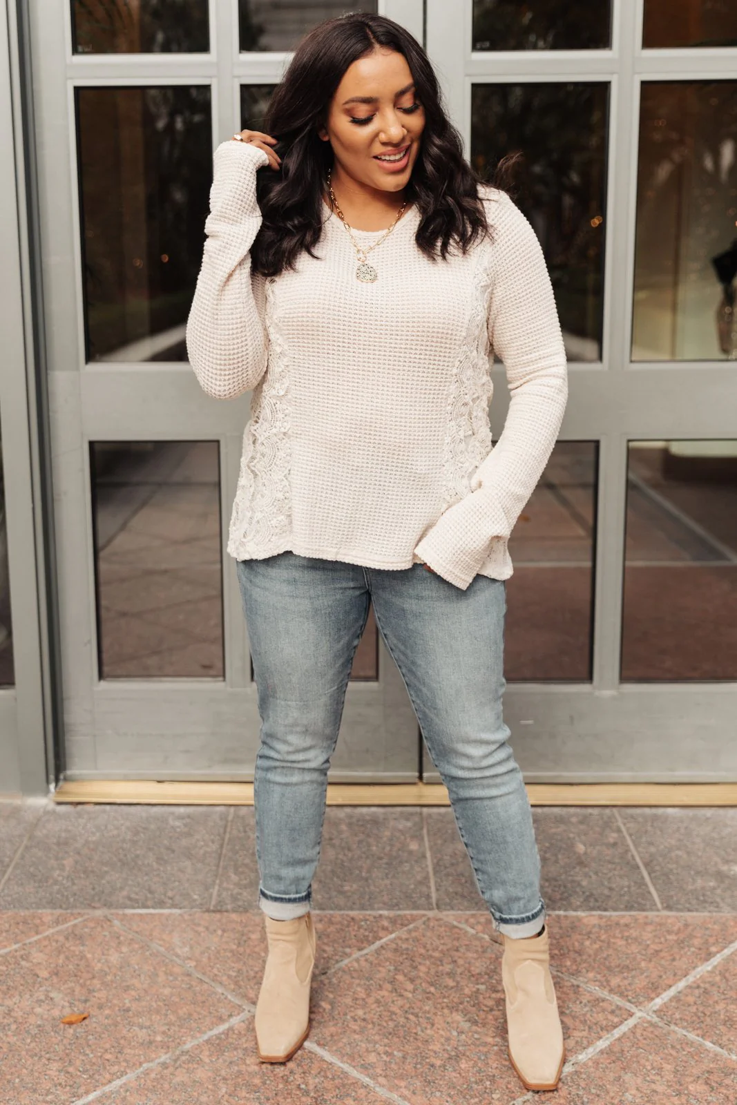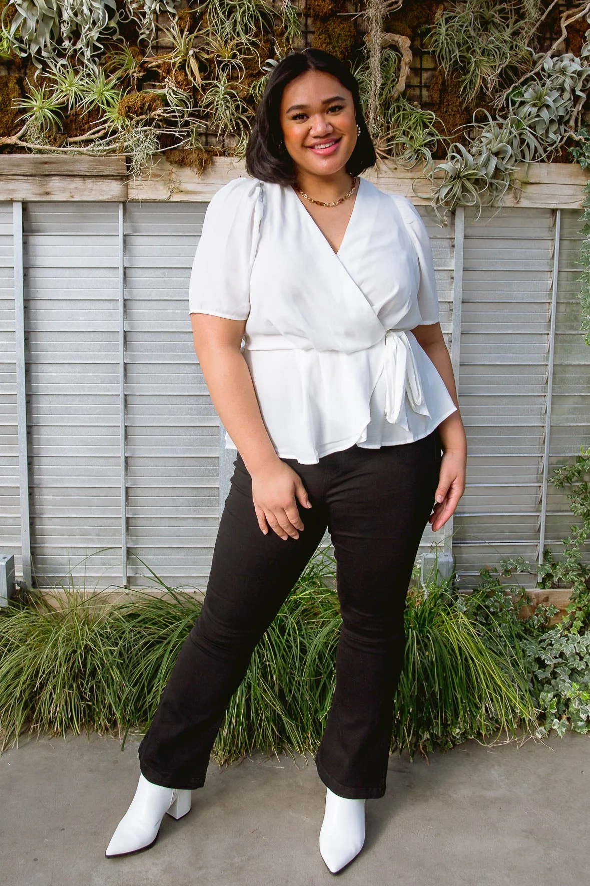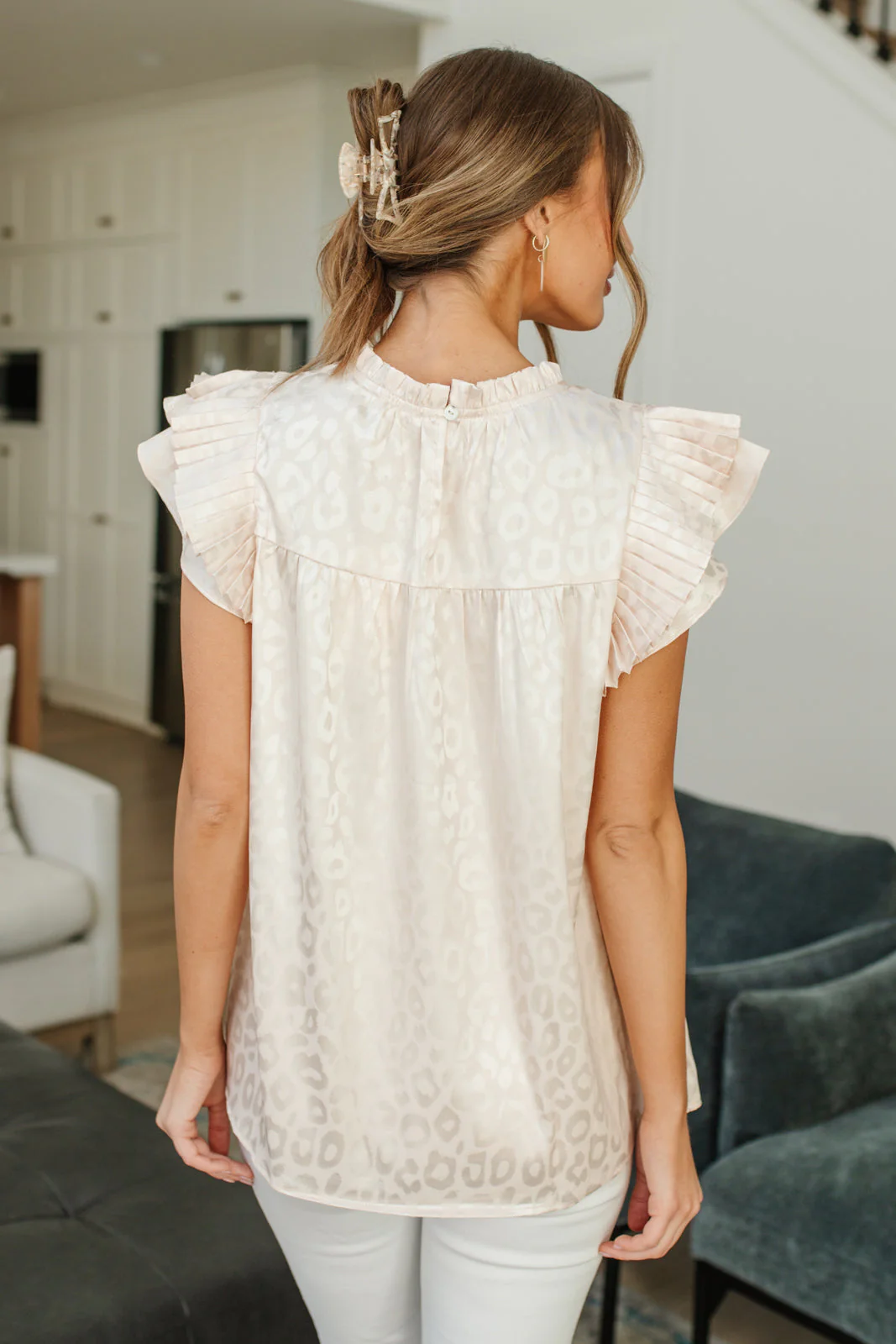 Crinkle Split Neckline Flutter Sleeve Top in Taupe