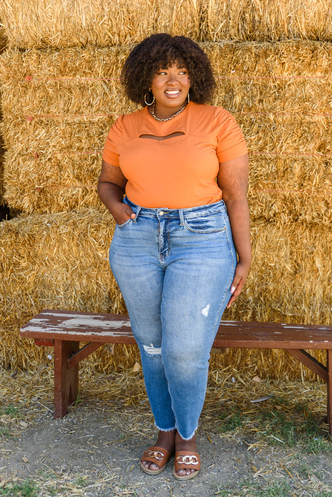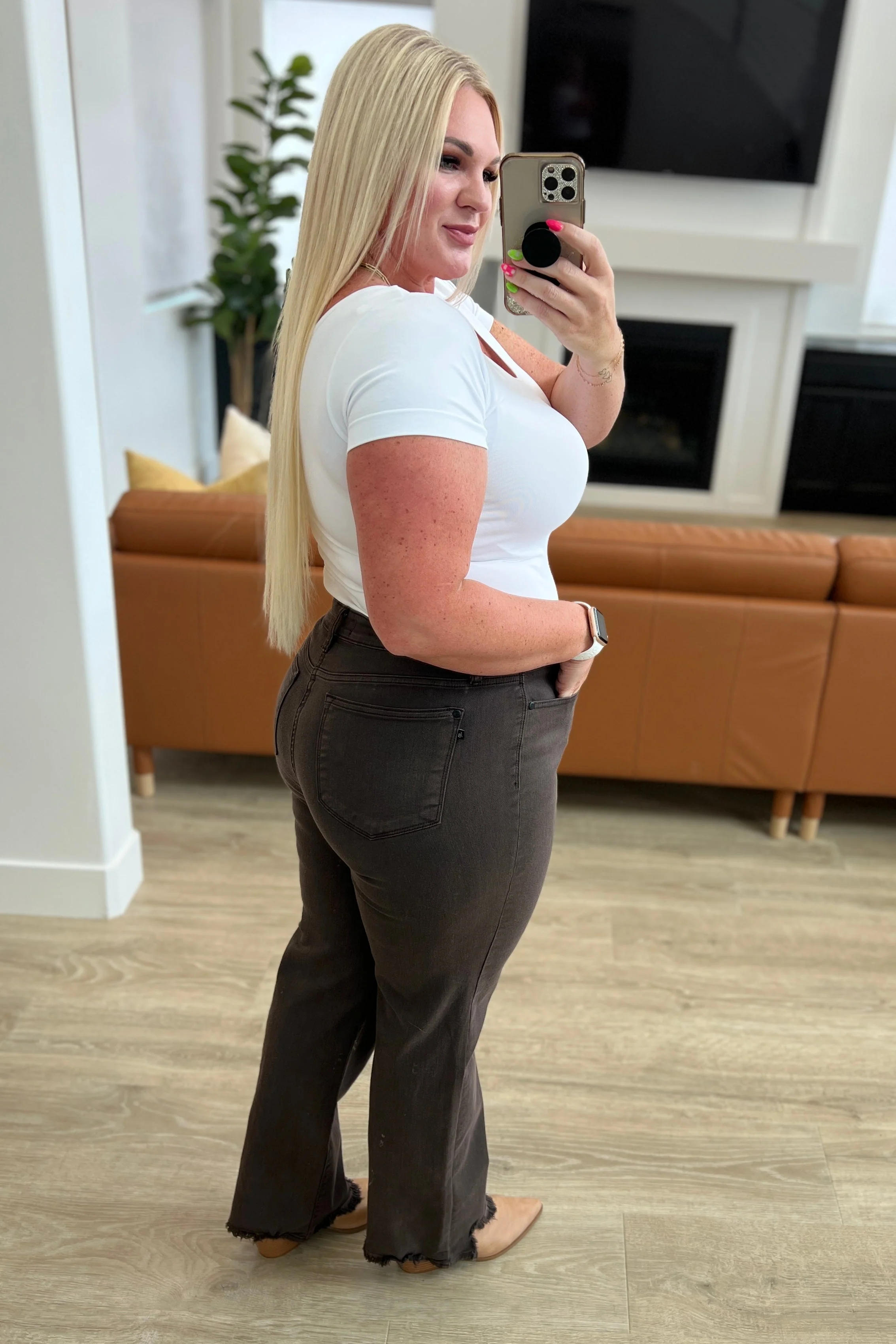 JUDY BLUE Sybil High Rise Frayed Hem 90's Straight Jeans in Brown