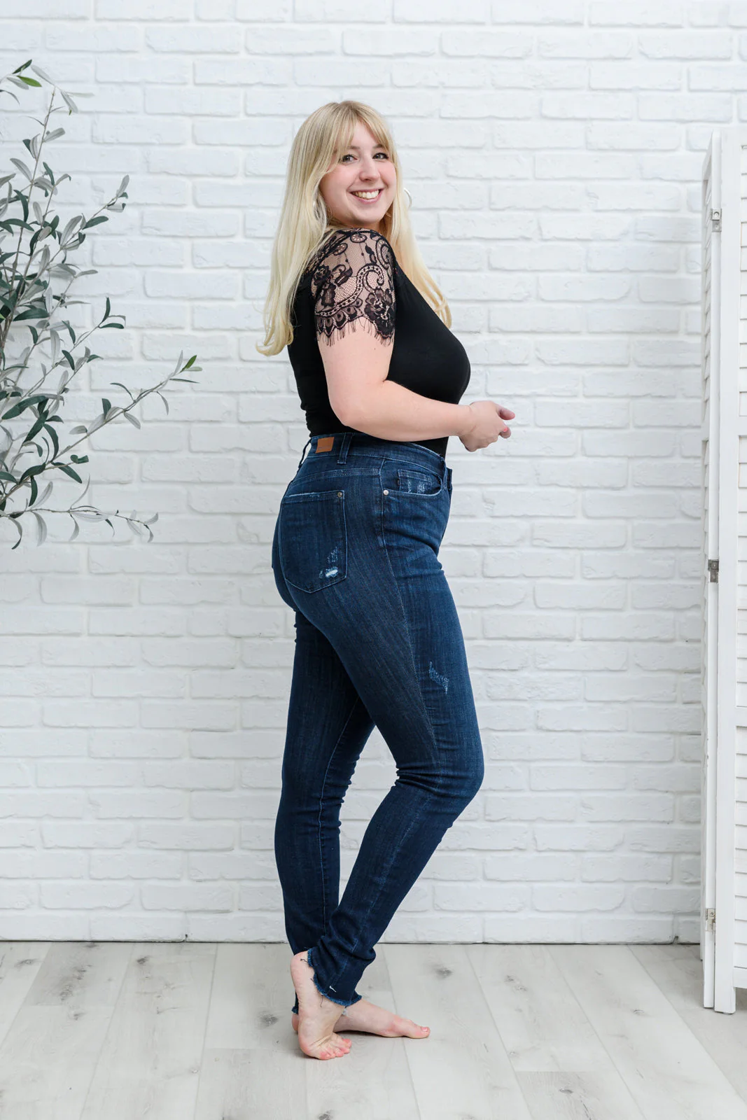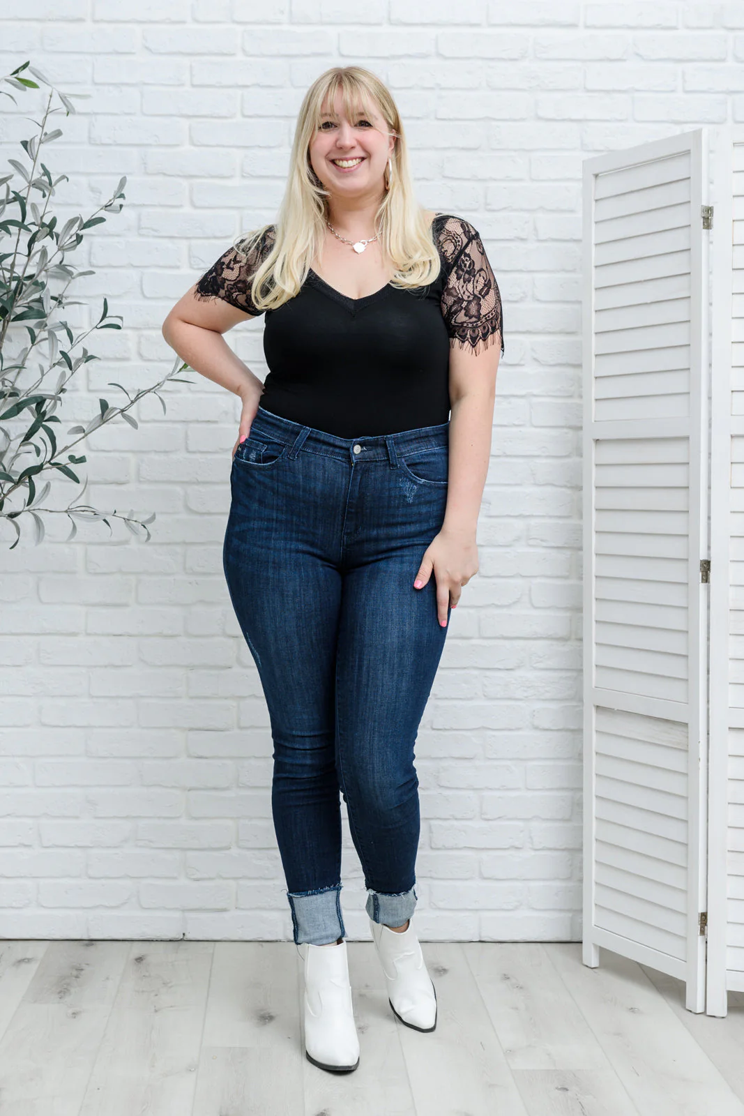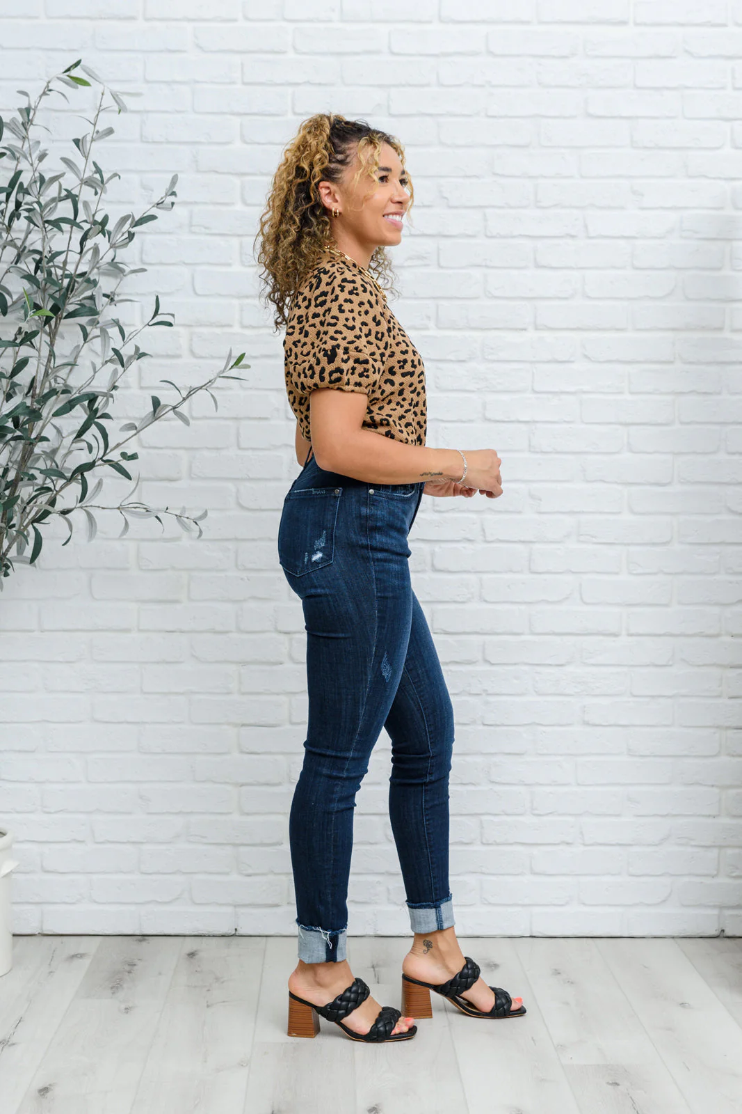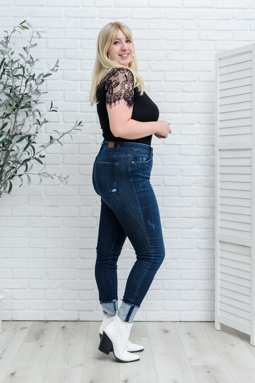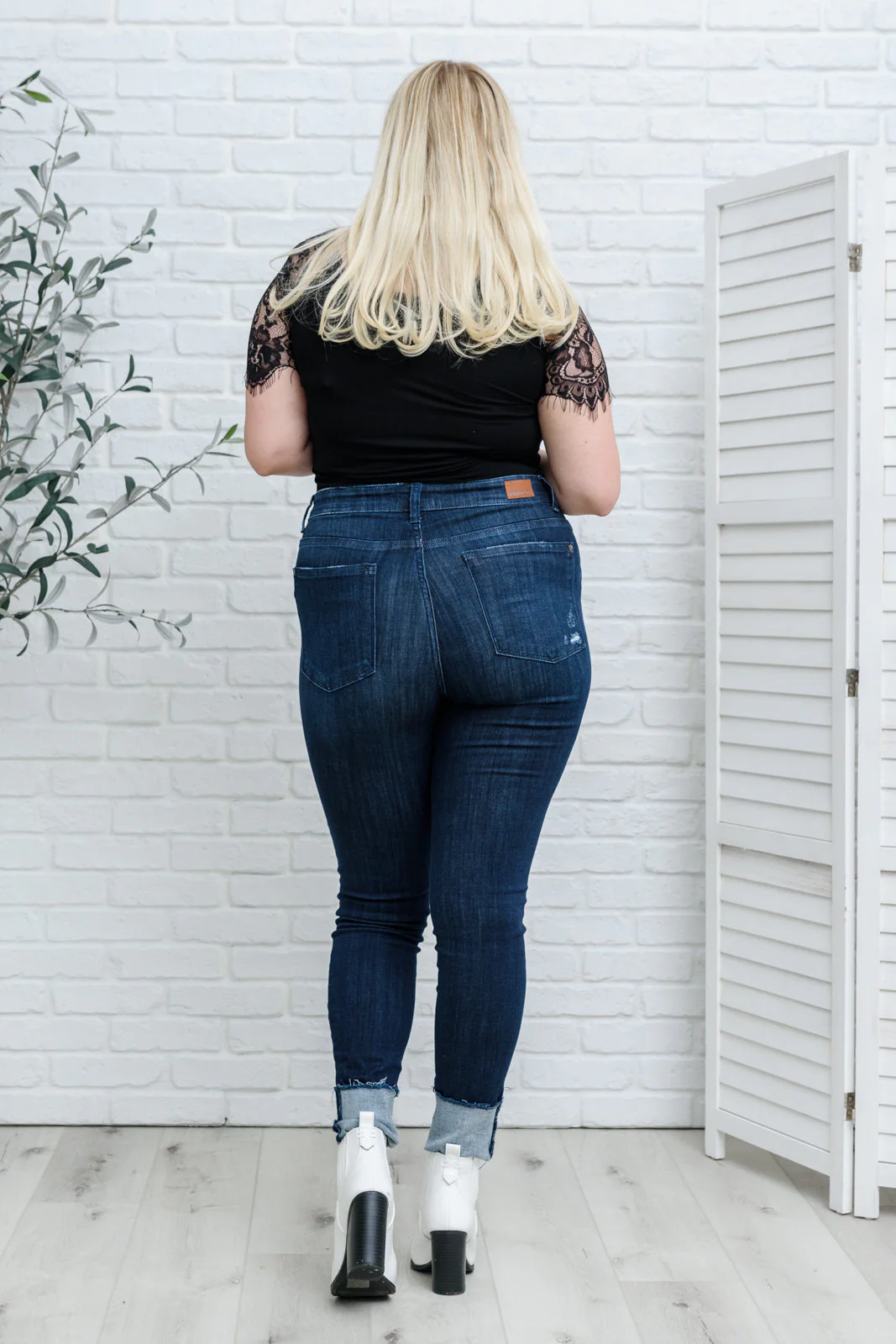 JUDY BLUE Maeve Mid-Rise Dark Wash Cuffed Skinny