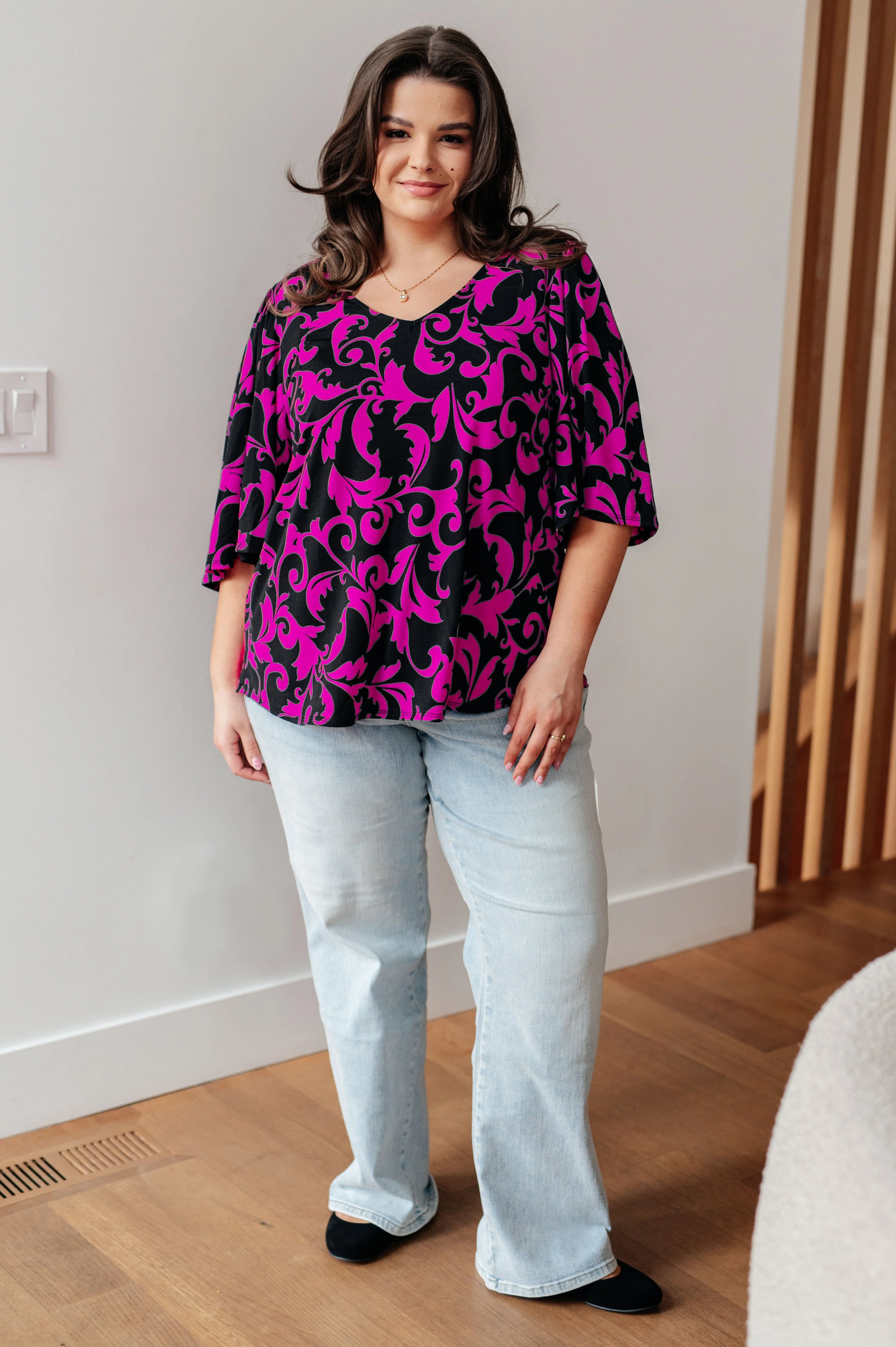 Anywhere We Go Flutter Sleeve Top in Blue Combo