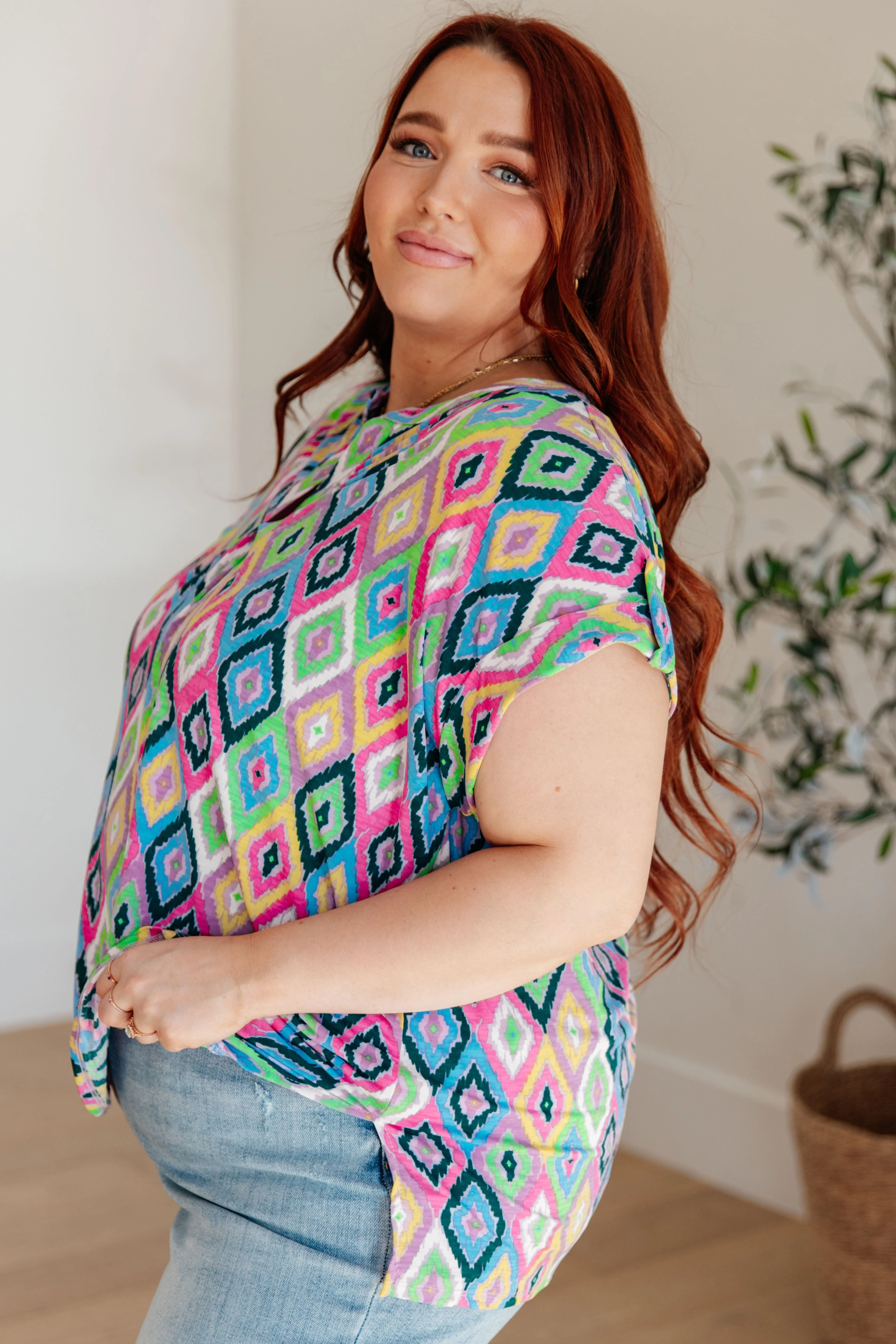 Lizzy Cap Sleeve Top in Lavender Ikat