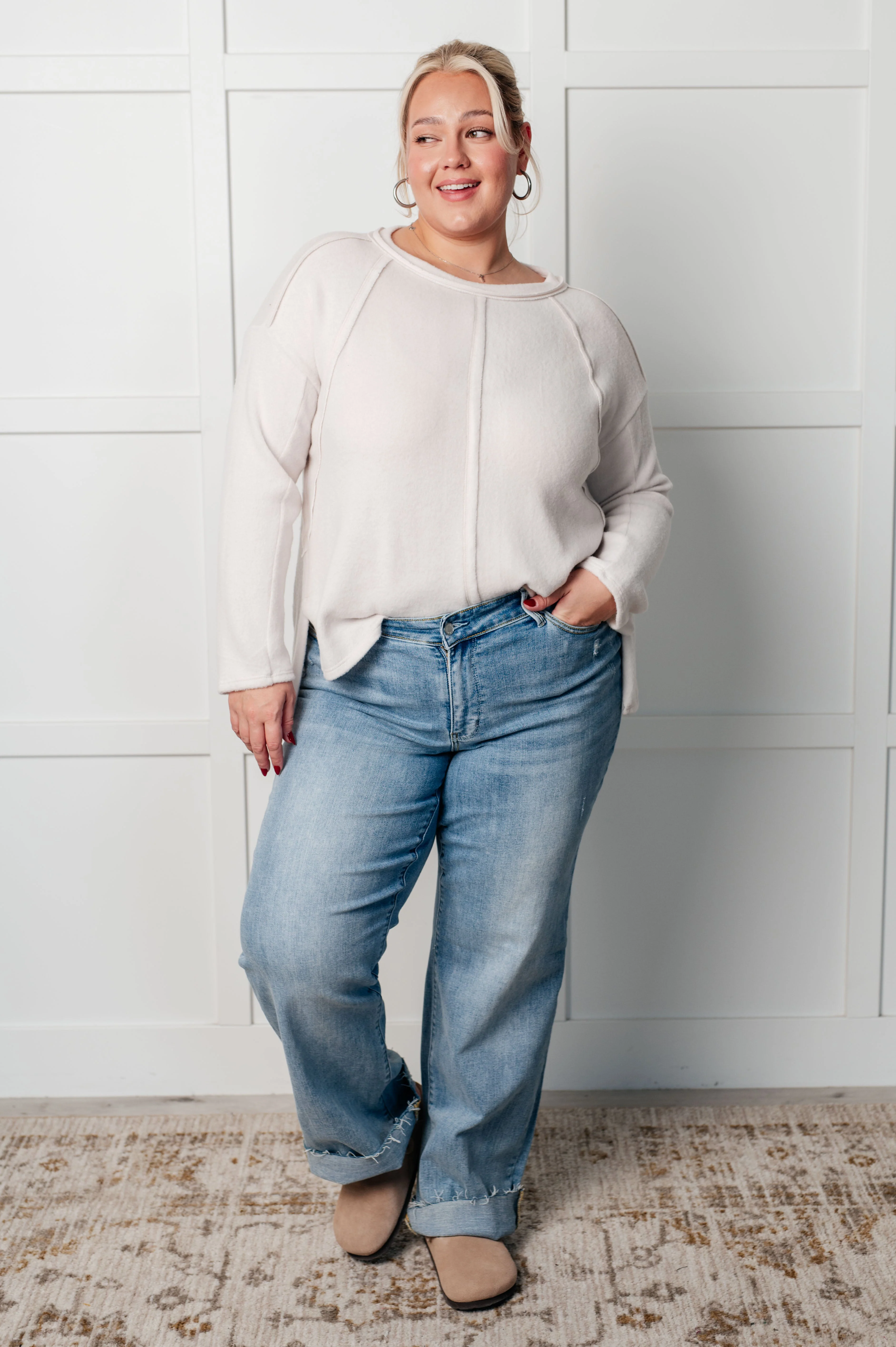 Simple Silhouette Brushed Hacci Sweater in Sand Beige