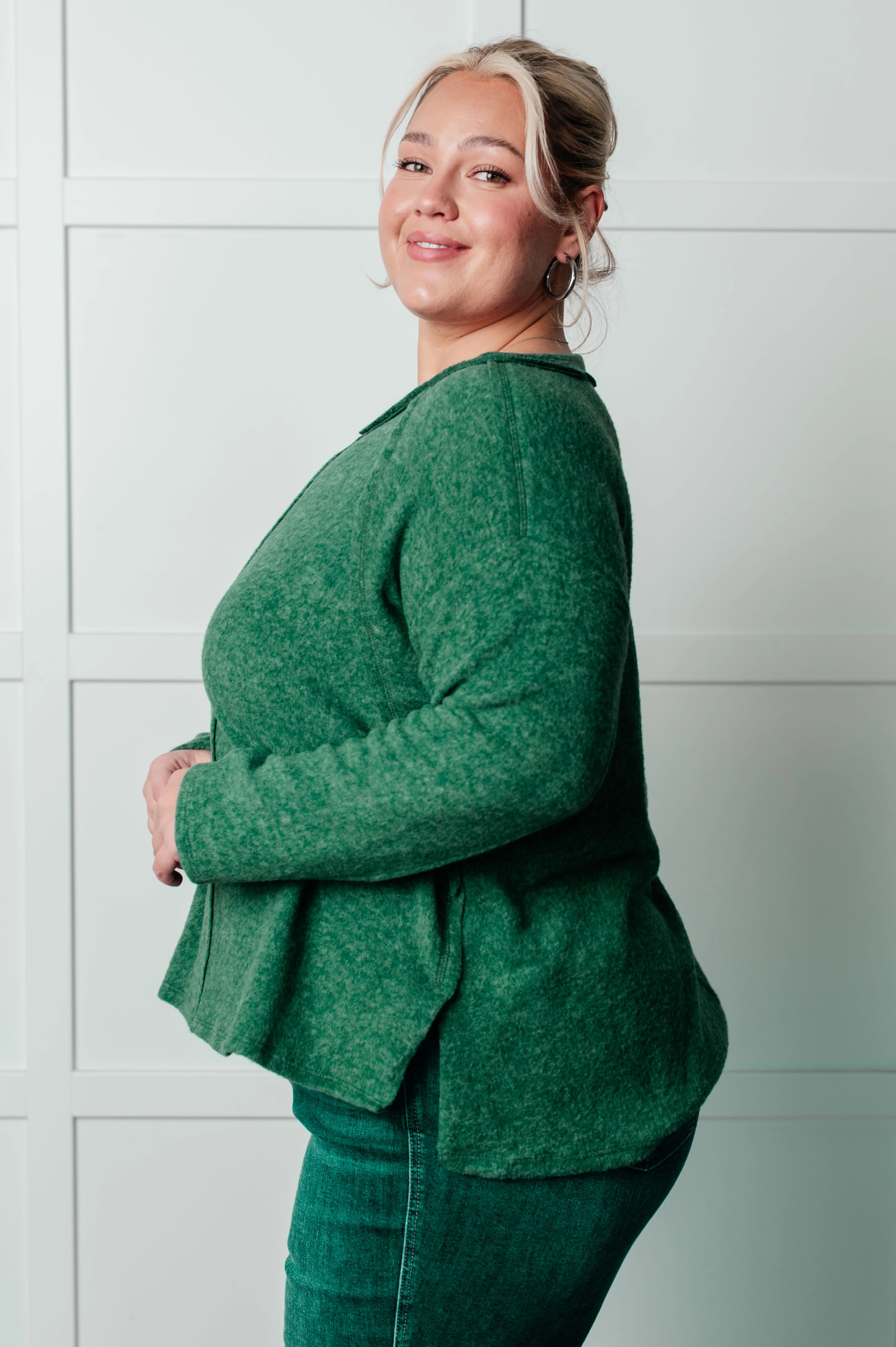 Simple Silhouette Brushed Hacci Sweater in Dark Green